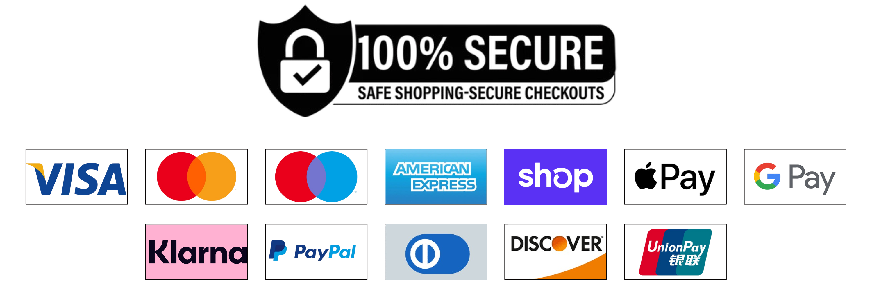 We accept Visa, Mastercard, American Express, PayPal, Klarna, and other secure payment methods.